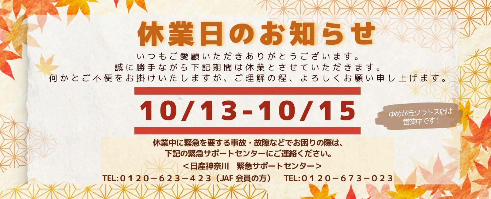 ※ゆめが丘ソラトス店は、火曜日・水曜日も営業しております。(年中無休・ゆめが丘ソラトスの休館日に準ずる) ※法人営業部と中古車店舗については店舗ページのカレンダーをご確認ください。